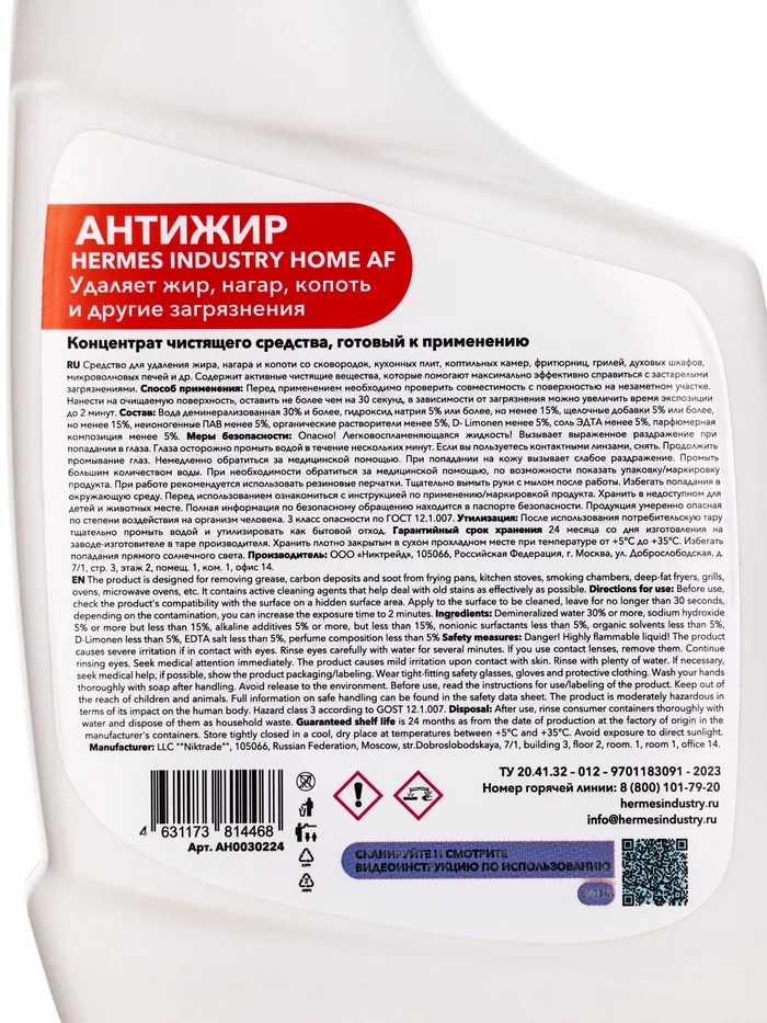 Hermes Industry HOME антижир — это незаменимый продукт для любой кухни. Он поможет вам легко и быстро справиться с жирными загрязнениями, обеспечивая долгосрочные результаты и поддерживая порядок в вашем доме. Без усилий и долгих оттираний ваши поверхности будут чистыми и блестящими, а кухня наполнится свежестью и чистотой.