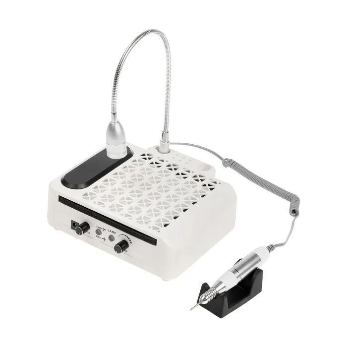 Аппарат Windigo LMH-04 обладает всеми необходимыми функциями для создания качественного маникюра и педикюра. Каждый элемент устройства будет для вас полезен и нужен на каждом этапе работы с ногтями. Металлическая ручка обработает ногтевую пластину и удалит кутикулу, светодиодная лампа точечно осветит каждый пальчик, мощный пылесос соберет остатки ногтевой пыли и сохранит чистоту на рабочем столе, а подставка под фрезы поможет удобно хранить инструменты.