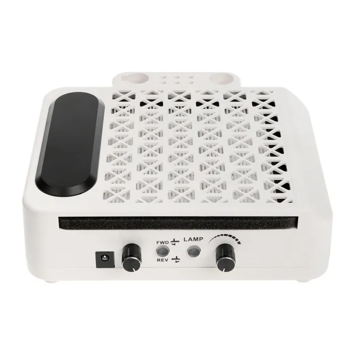 Понятная панель управления оборудована всем необходимым. Вы можете регулировать работу всех элементов устройства: включать лампу и пылесос, плавно регулировать скорость вращения фрез и мощность всасывания пылесоса, а также выбирать направление вращения фрез. Многообразие и простота - это отличительные особенности аппарата для маникюра.