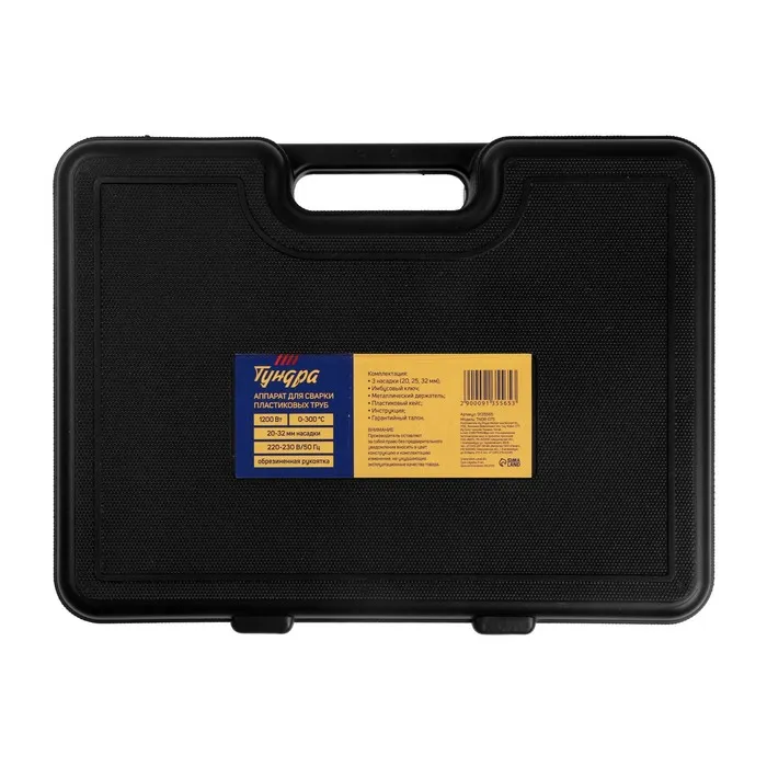 Аппарат для сварки пластиковых труб ТУНДРА, 1200 Вт, комплект насадок 20-32 мм, 0-300°, кейс — Характеристики