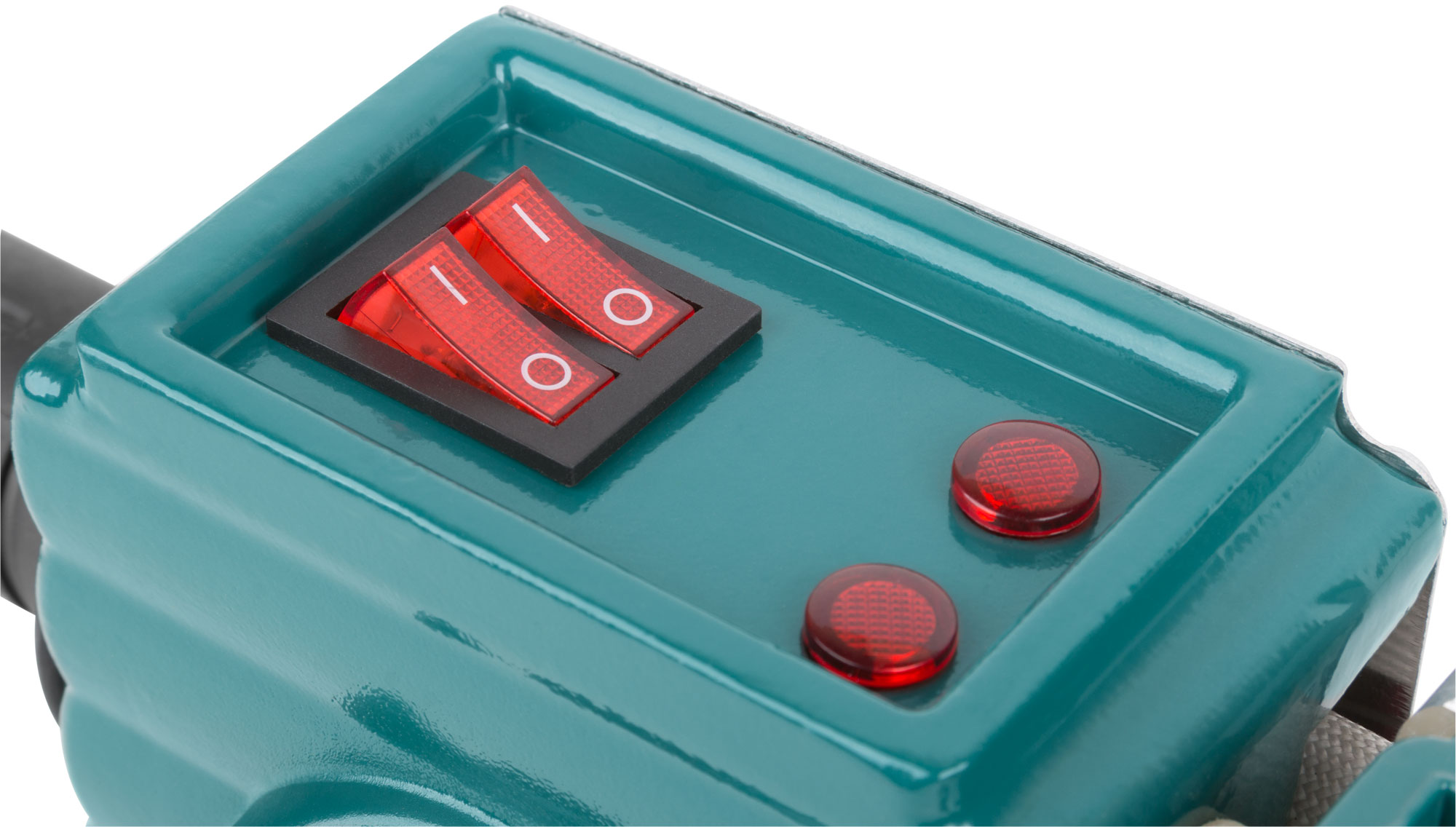 Аппарат оснащен двойным переключателем мощности и регулировкой температуры в диапазоне от 50 до 300 °C, что позволяет адаптироваться к различным условиям работы. Металлический кейс обеспечивает защиту и удобство транспортировки.