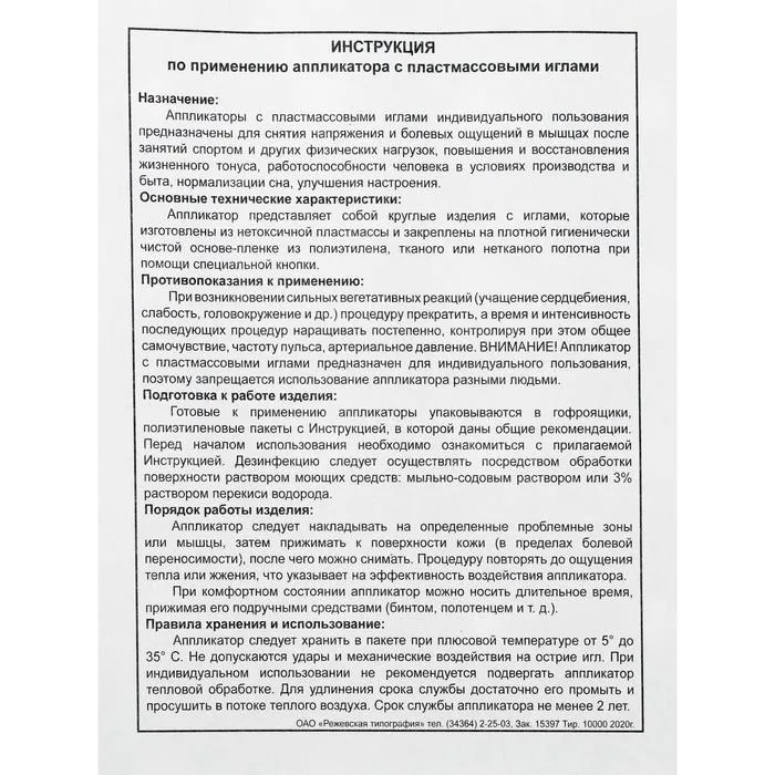 Ипликатор (Аппликатор) игольчатый может быть использован для: ускоренного восстановления работоспособности человека в условиях производства, быту, спорте.