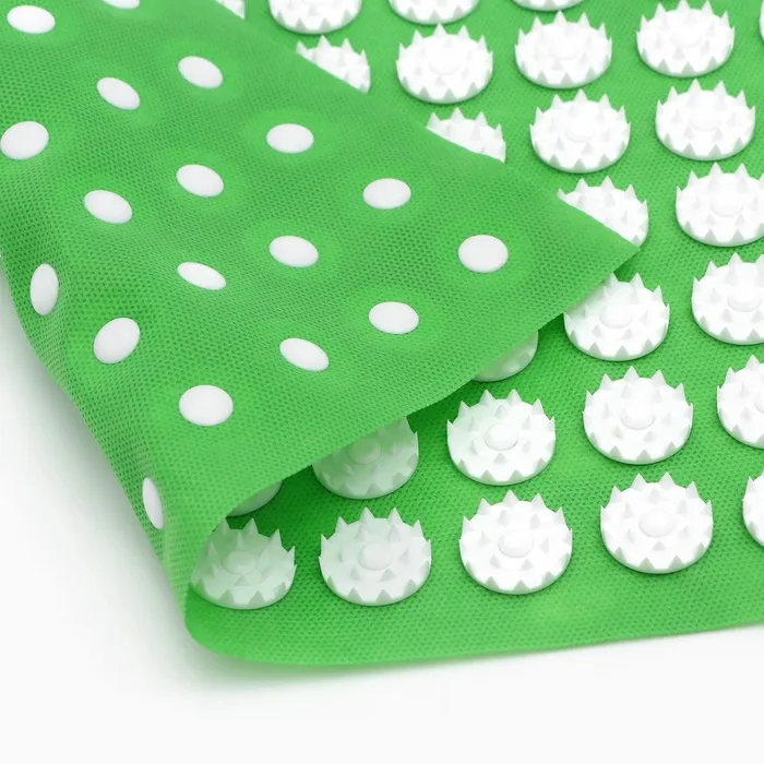 Для чистки аппликатора используйте мягкое мыло и воду, избегая чрезмерного нажима. После стирки аккуратно отожмите изделие и разложите его для сушки на ровной поверхности при комнатной температуре. Не подвергайте аппликатор воздействию прямых солнечных лучей и не гладьте его. Храните аппликатор при положительной температуре, защищая иглы от возможных повреждений. В случае проявления аллергических реакций прекратите использование и обратитесь к врачу.