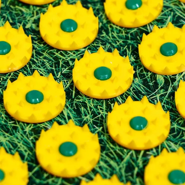 круглые изделия с иглами изготовлены из нетоксичной пластмассы и закреплены специальными кнопками.