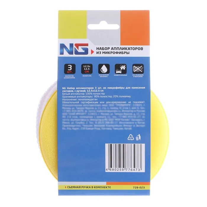 Набор аппликаторов NEW GALAXY из микрофибры и поролона предназначен для нанесения воска, различных составов, полировки и ухода за автомобилем.