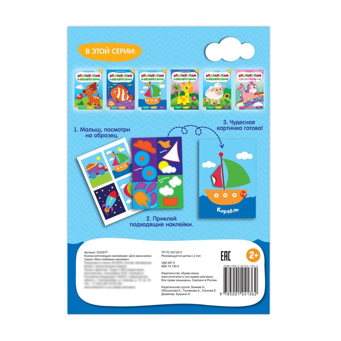 Аппликации наклейками «Для мальчиков», 12 стр. — Характеристики