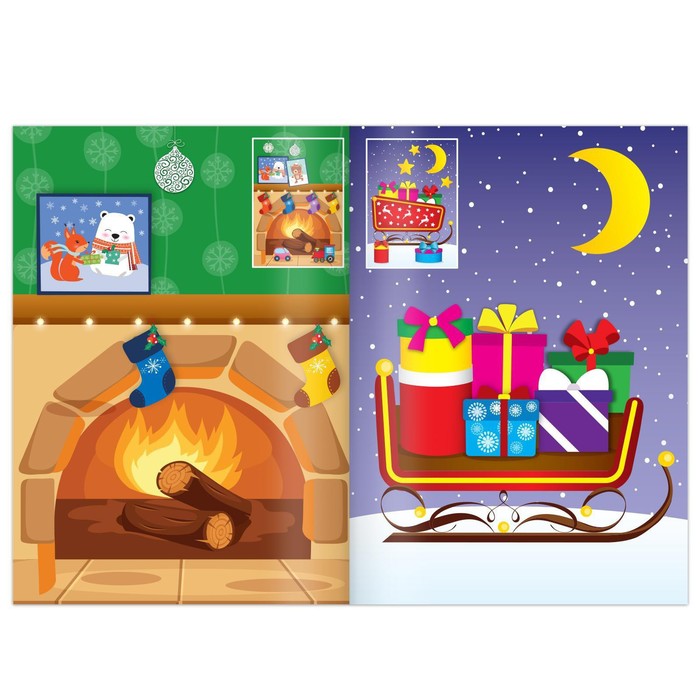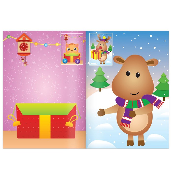 Внутри ждут целых 8 картинок! А готовые аппликации станут чудесным новогодним подарком для близких крохи!