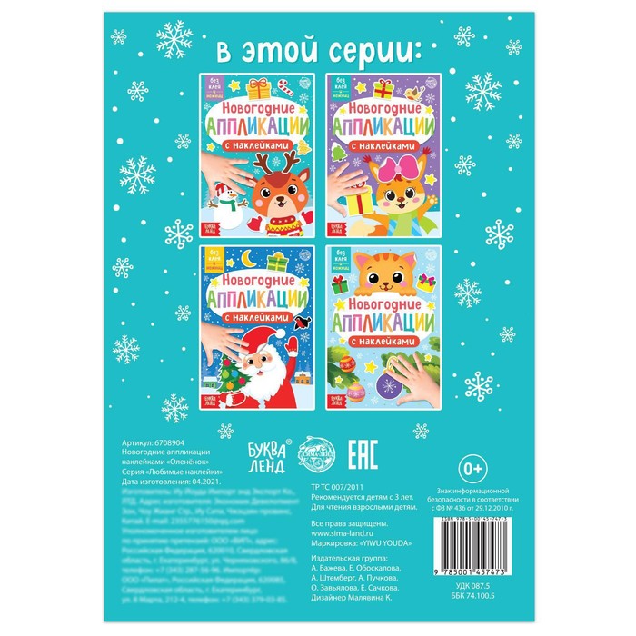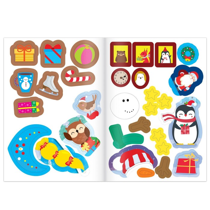 Внутри ждут целых 8 картинок! А готовые аппликации станут чудесным новогодним подарком для близких крохи!