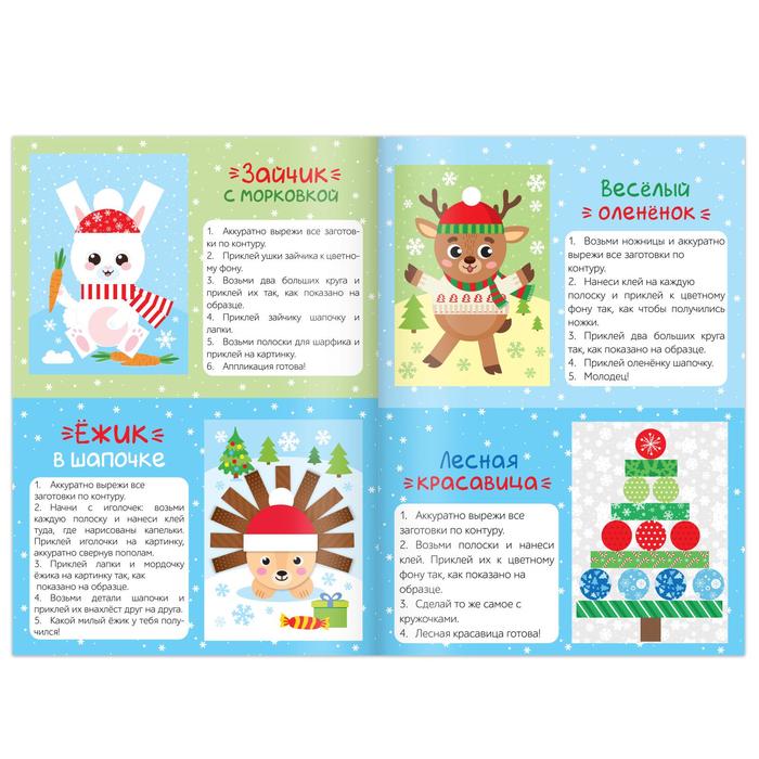 С этой творческой книгой у ребёнка получатся яркие новогодние поделки. Ими можно будет украсить ёлочку, интерьер детской или вручить в подарок близким.