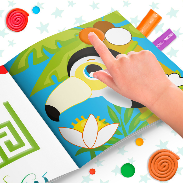 Книга для аппликации пластилином направлена на развитие моторики, внимательности и аккуратности у малышей.