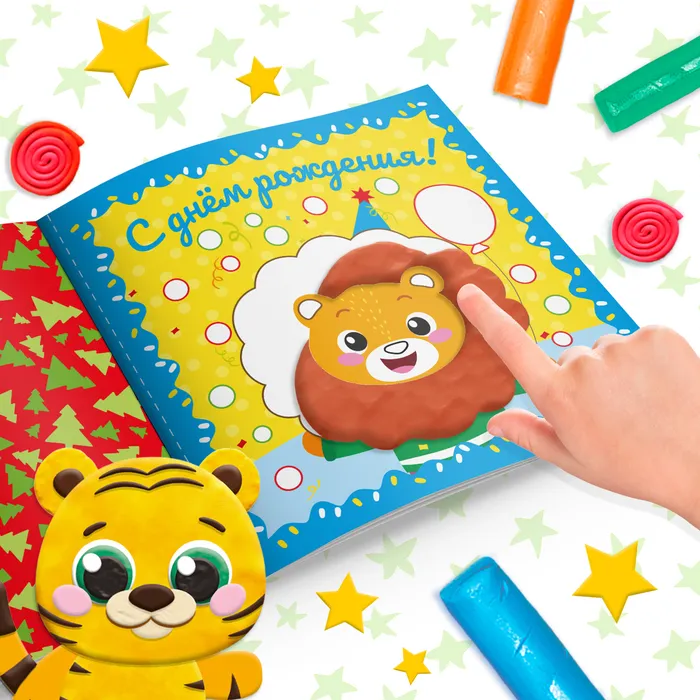В комплекте есть разноцветный мягкий пластилин, поэтому можно сразу приступать к творческим занятиям с малышами.