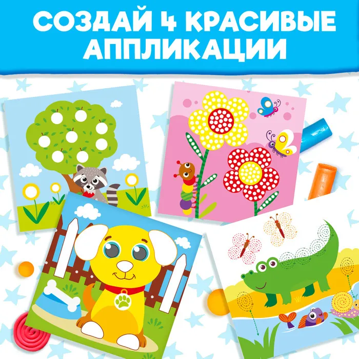 Аппликации пластилином «Учимся лепить» — набор творческих заданий, с помощью которых малыш смастерит открытки для близких.