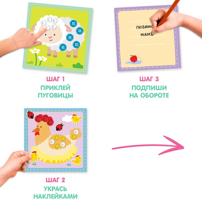 Займитесь увлекательным творчеством вместе с ребёнком и создайте милую картинку из пуговиц!