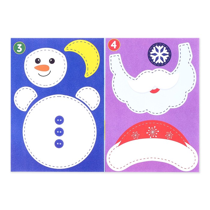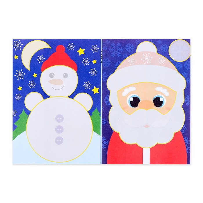 С «Новогодними аппликациями» малыш сделает праздничные открытки для семьи и друзей. Ребёнок вырежет фигуры снеговика и Деда Мороза, напишет послания и порадует близких яркой зимней карточкой.