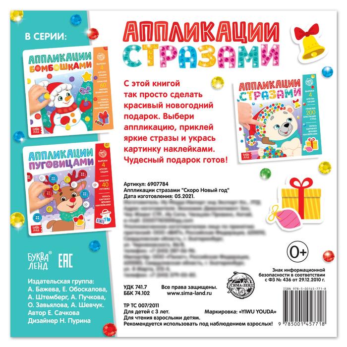 Покажите малышу, как отсоединять кристаллики, и украсьте вместе с ним изображение. В книге 4 ярких картинки, 200 стразов и более 40 наклеек! Занятия с аппликацией благотворно влияют на развитие мелкой моторики и координации движений, тренируют цветовосприятие и эстетический вкус. Полученная картинка украсит детскую комнату или станет презентом для близких.