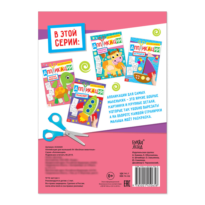 В этой книге ребёнка ждут объёмные аппликации. Его задача: вырезать фигурки из бумаги и приклеить их на основу. В итоге получится 4 готовых картинки.
