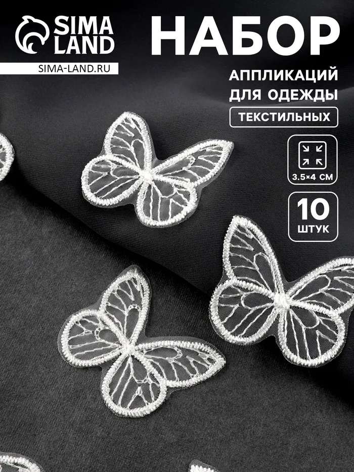Добавьте нежности и легкости детским вещам!Текстильные бабочки для одежды — это набор белых аппликаций из полиэстера, которые превратят обычную одежду в оригинальную. Каждая бабочка размером 3,5×4 см легко пришивается к ткани, создавая милый и воздушный акцент.