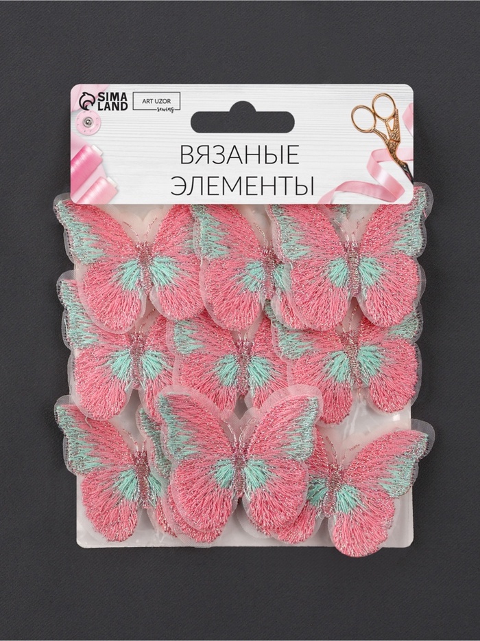 Аппликация для одежды «Бабочка», текстильная, 5×4 см, 10 шт., розовая, голубая — Характеристики