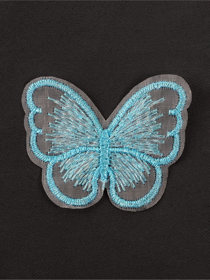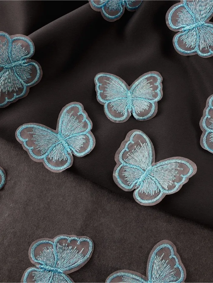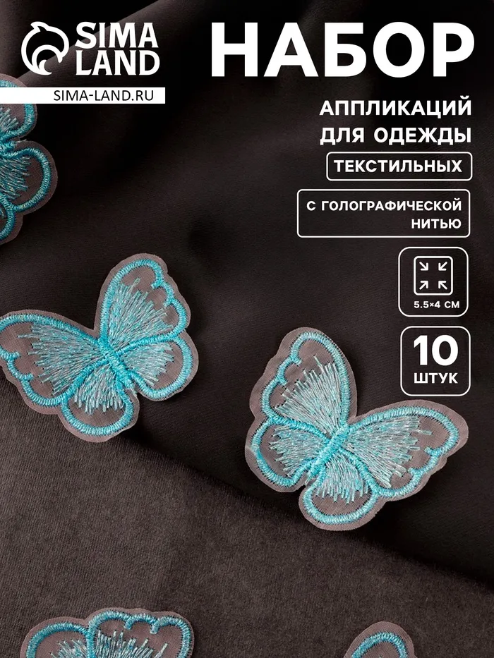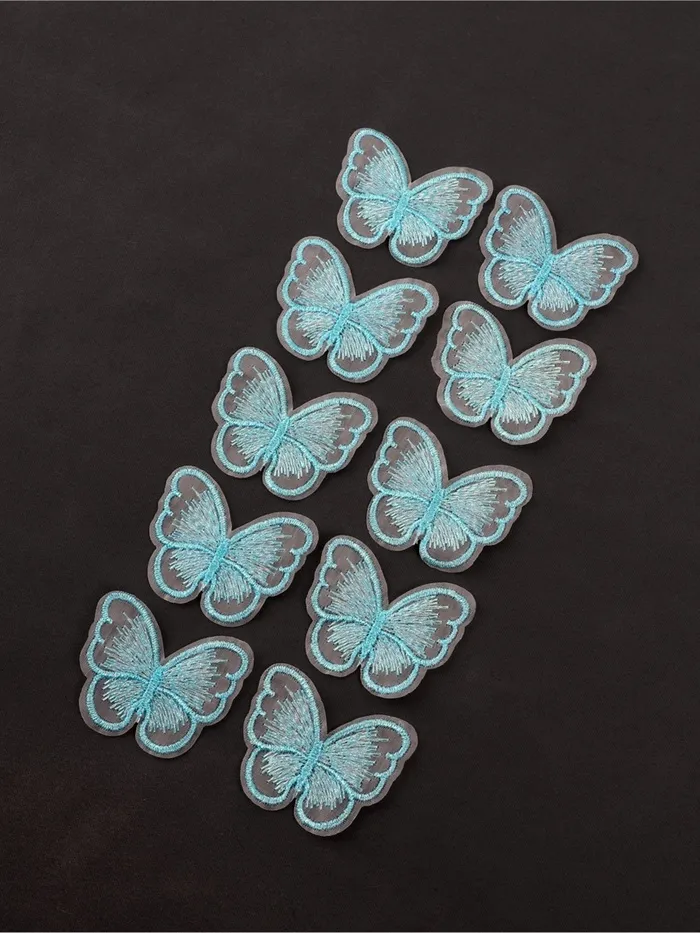 Аппликация для одежды «Бабочка», текстильная, с голографической нитью, 5.5×4 см, 10 шт., голубая — Характеристики
