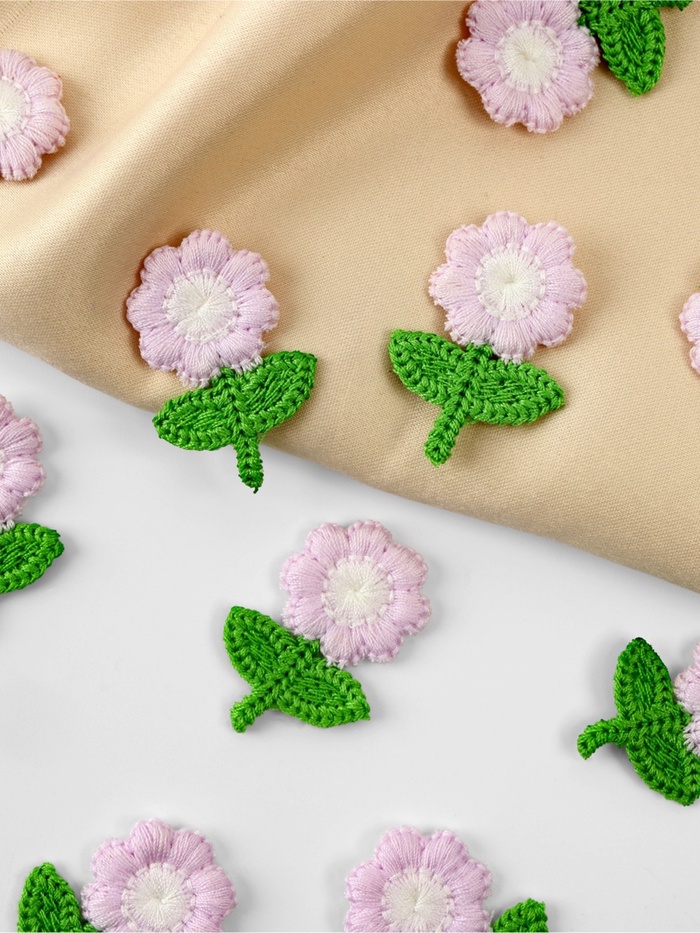 Аппликация для одежды «Цветочек», текстильная, 2.5×3.5 см, 10 шт., сиреневая, зелёная — Характеристики