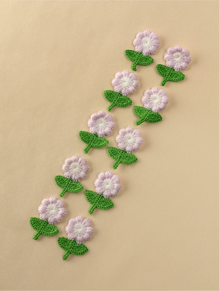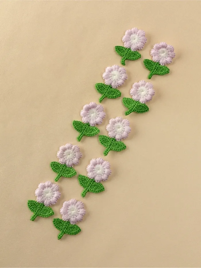 Оживите свои вещи нежными цветочными акцентами от Арт Узор. В наборе вы найдёте 10 миниатюрных цветочков размером 2.5×3.5 см в гармоничном сочетании сиреневых и зелёных оттенков - готовое решение для создания свежих весенних образов.
