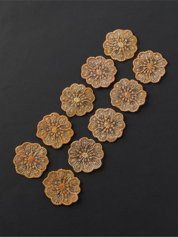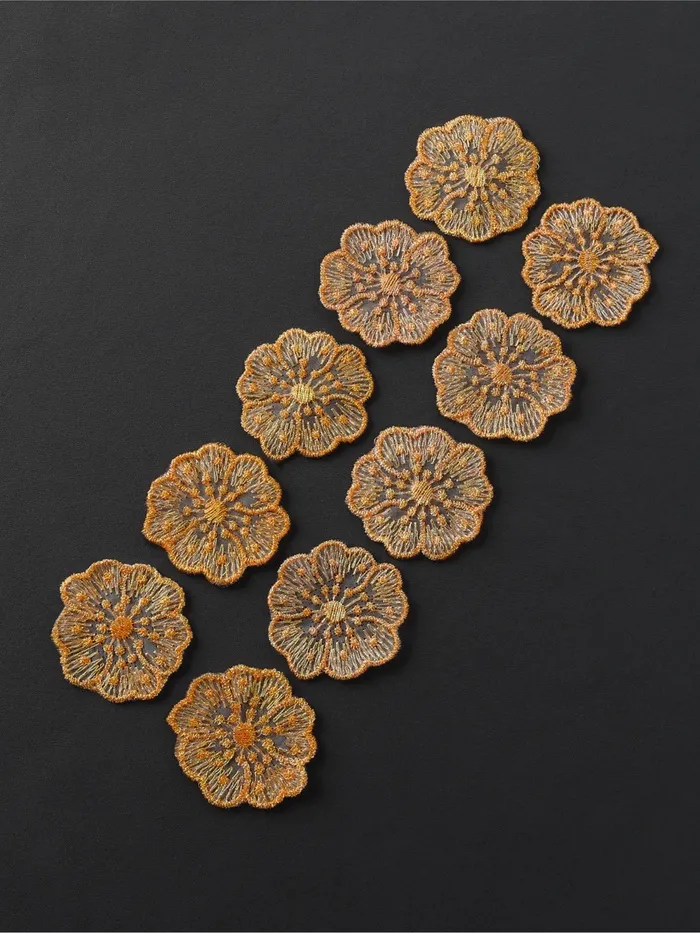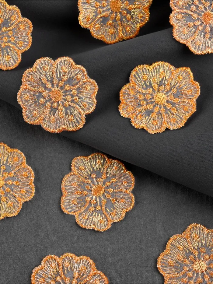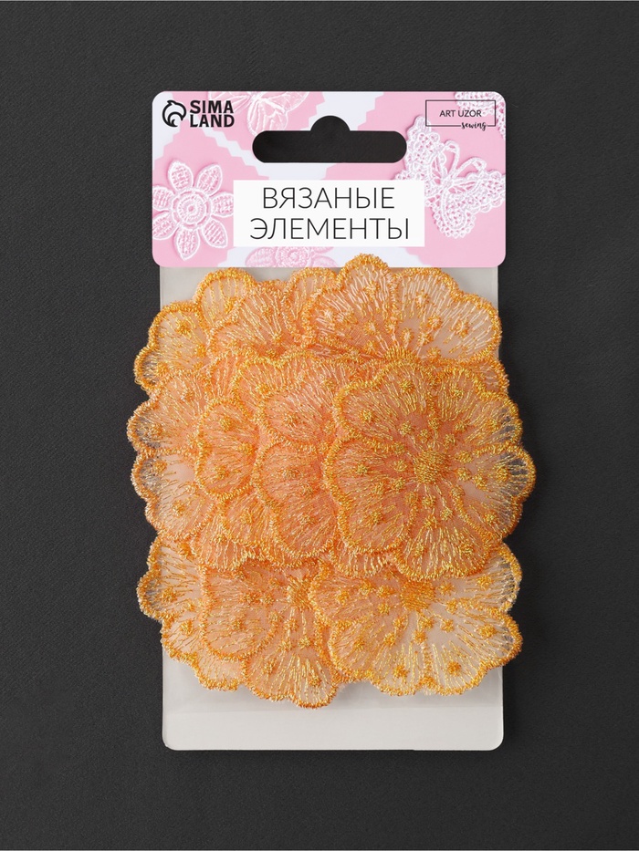 Аппликация для одежды «Цветочки», текстильная, с голографической нитью, 4.5×4.5 см, 10 шт., оранжевая — Характеристики