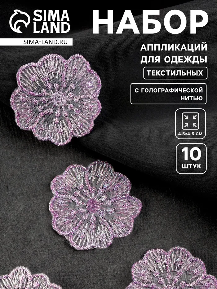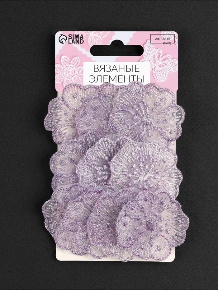 Раскройте магию переливов в своем гардеробе с этими необычными украшениями от Арт Узор. Десять сиреневых цветочков размером 4.5×4.5 см с голографической нитью создают эффект мерцания, который преобразит даже самую простую вещь.