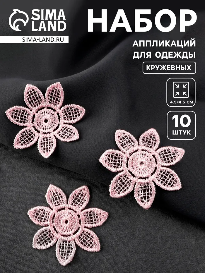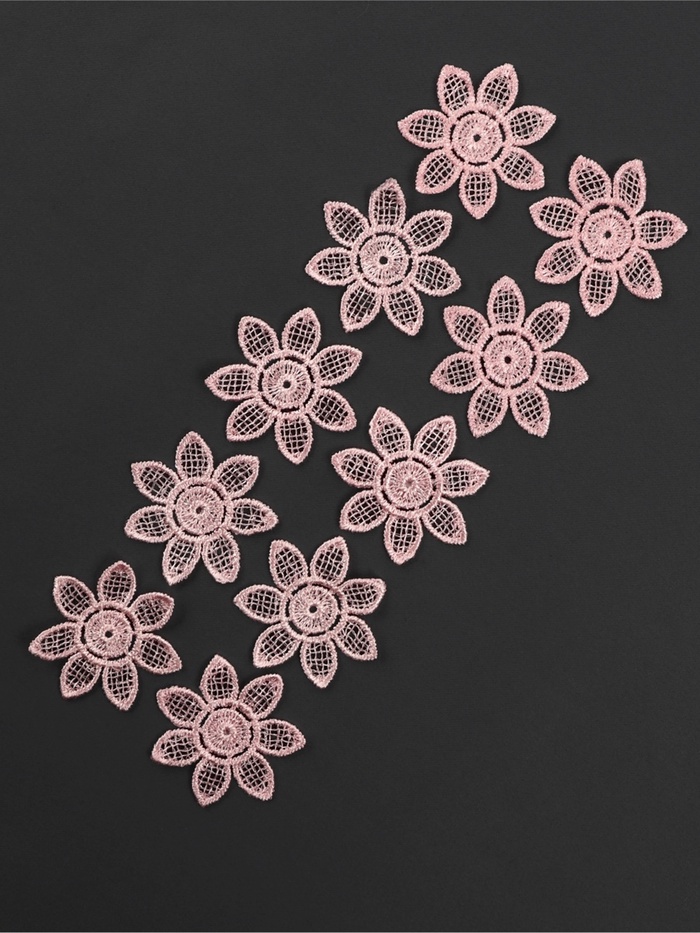 Преобразите обычные вещи в нежные шедевры с этими очаровательными кружевными цветами. В наборе 10 розовых аппликаций диаметром 4,5 см - идеальный декор для создания романтичных образов.