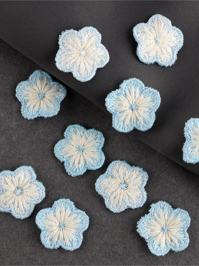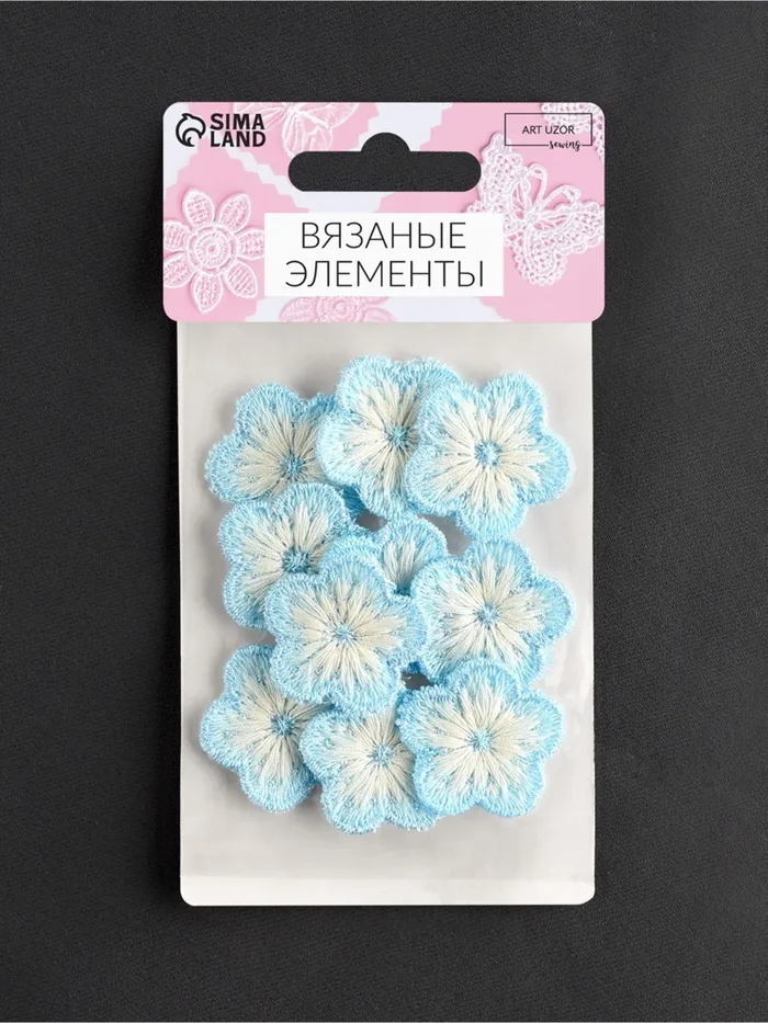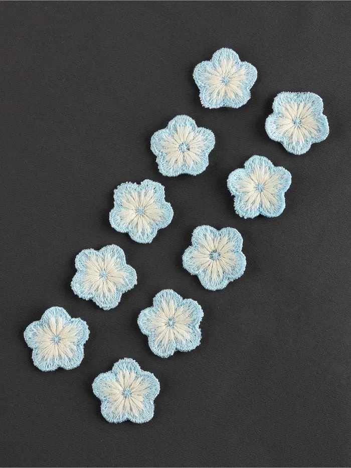 Нежные текстильные цветы добавят воздушности детской одежде и аксессуарам. В наборе 10 бело-голубых аппликаций размером 2.8×2.8 см из мягкого полиэстера, которые легко превращают обычные вещи в стильные.