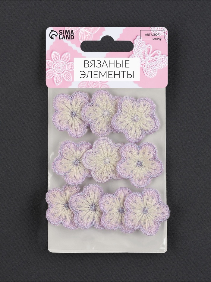 Аппликация для одежды «Цветок», текстильная, 2.8×2.8 см, 10 шт., сиреневая, белая — Характеристики