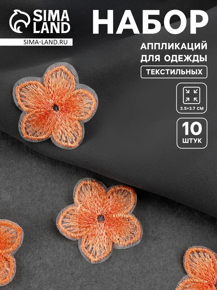 Аппликация для одежды «Цветок», текстильная, 3.5×3.7 см, 10 шт., оранжевая — Характеристики