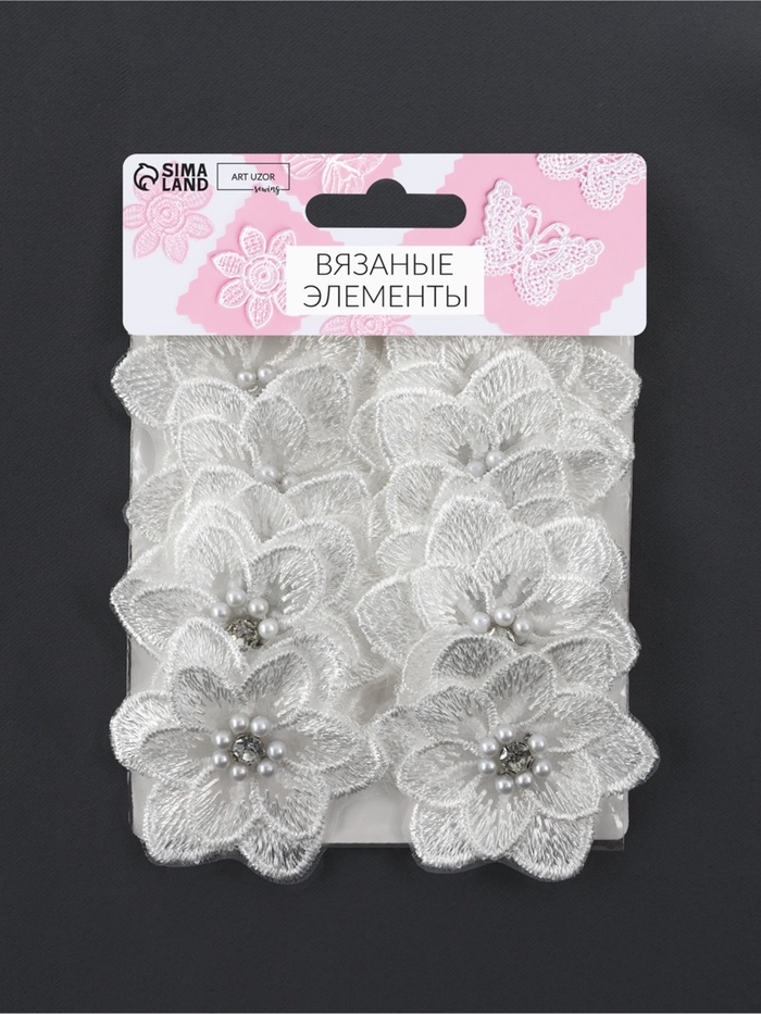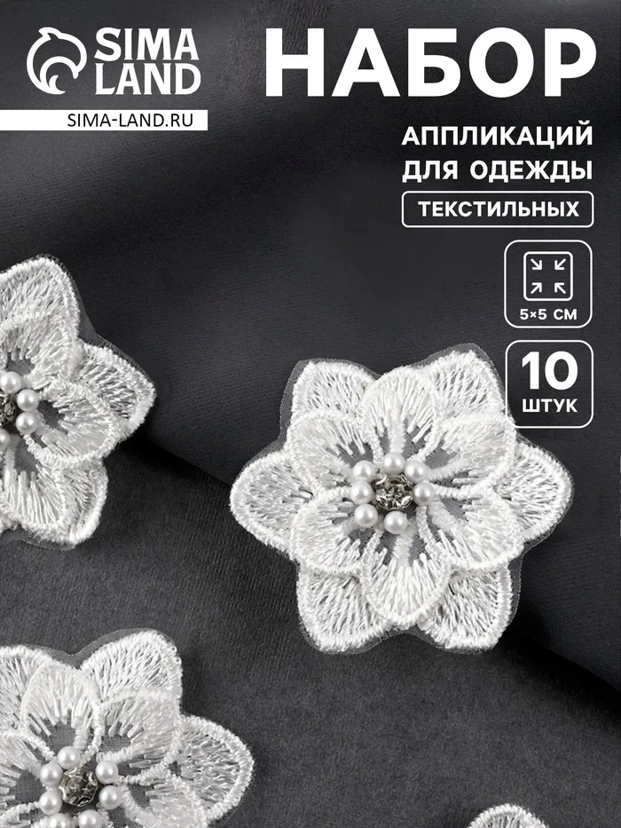 Аппликация для одежды «Цветок» текстильная, 5×5 см, 10 шт., белая — Характеристики