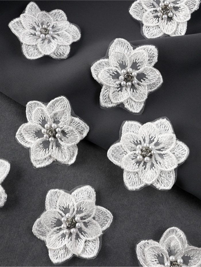 Превратите любую одежду или аксессуар в уникальное произведение искусства с этими элегантными текстильными аппликациями. Набор из десяти белоснежных цветов, выполненных из высококачественного полиэстера с добавлением бусин, станет вашим надёжным помощником в создании стильного и неповторимого образа. Каждая аппликация размером 5×5 см — это идеальный баланс между красотой и практичностью.