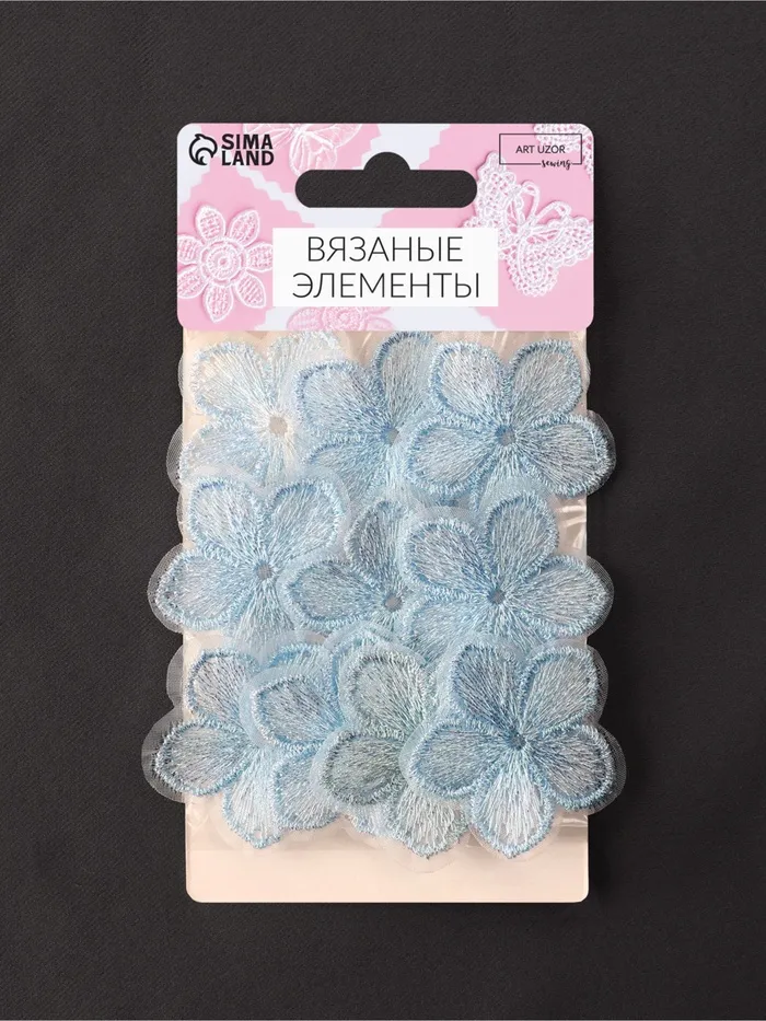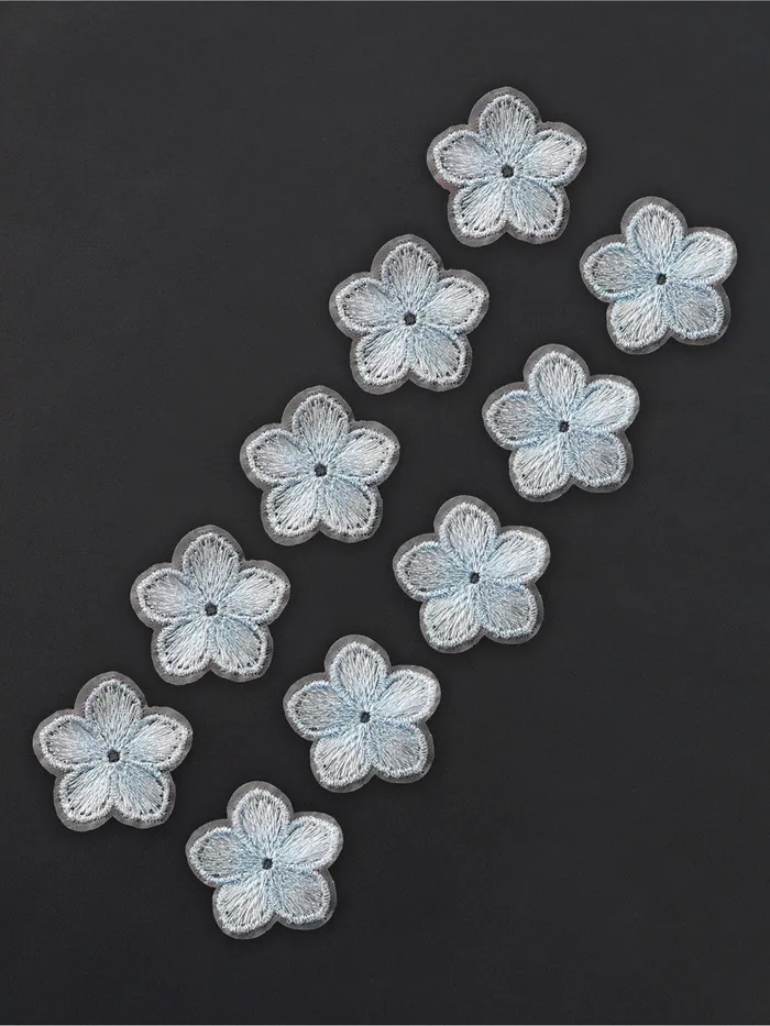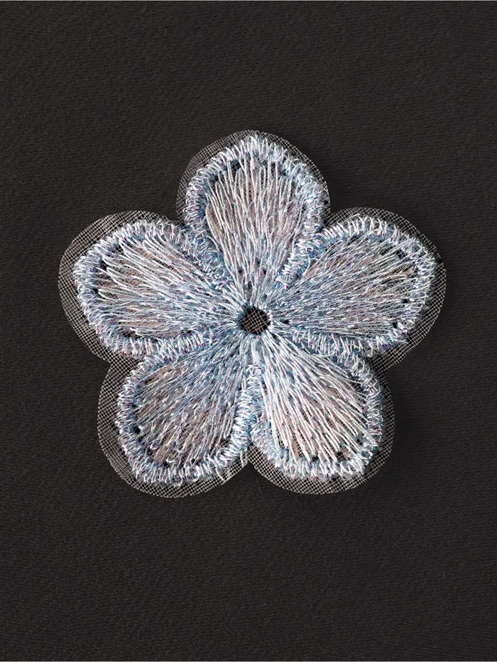 Аппликация для одежды «Цветок», текстильная, с голографической нитью, 3.5×3.5 см, 10 шт., голубая — Характеристики