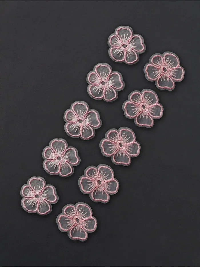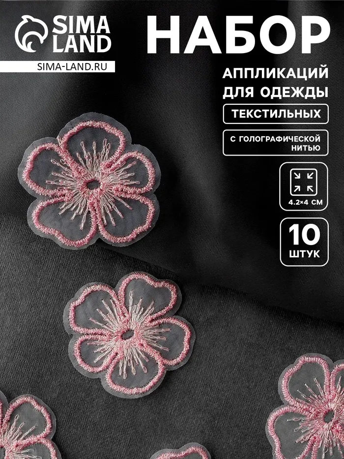 Аппликация для одежды «Цветок» текстильная, с голографической нитью, 4.2×4 см, 10 шт., розовая — Характеристики