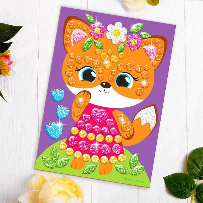 Аппликация форменными стикерами «Лисичка», набор для творчества, стикерная мозаика — это простая и эффектная аппликация!