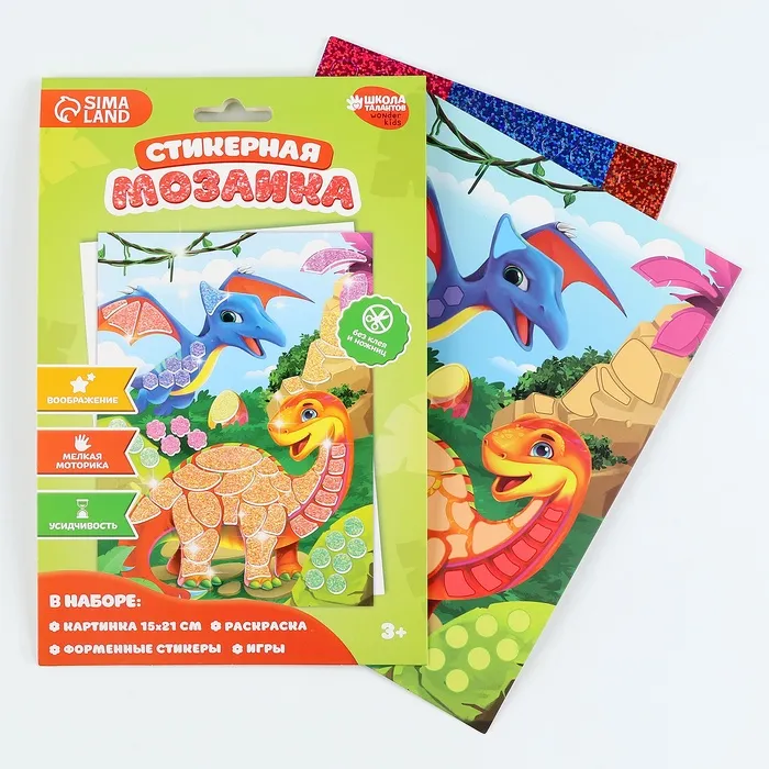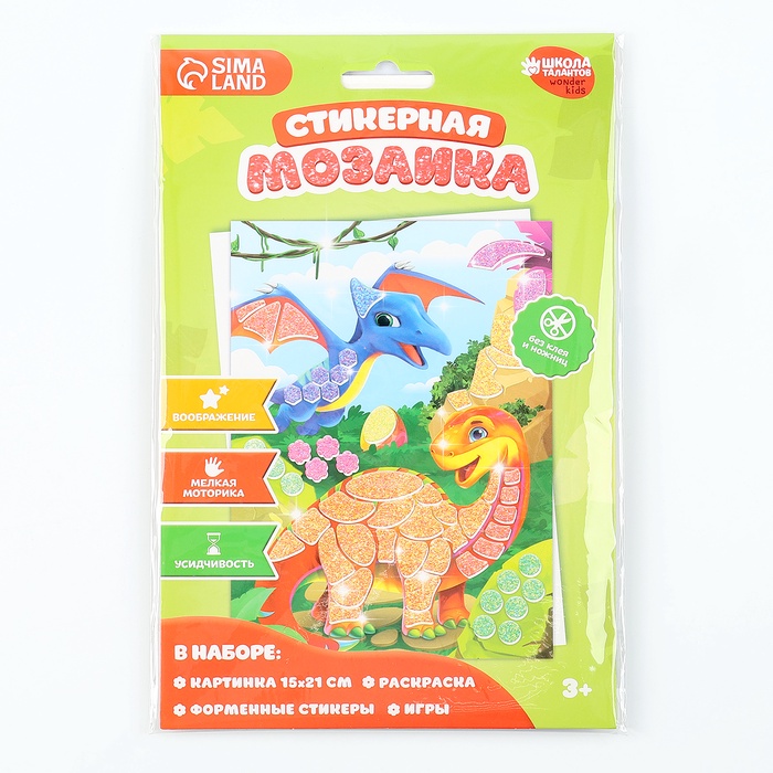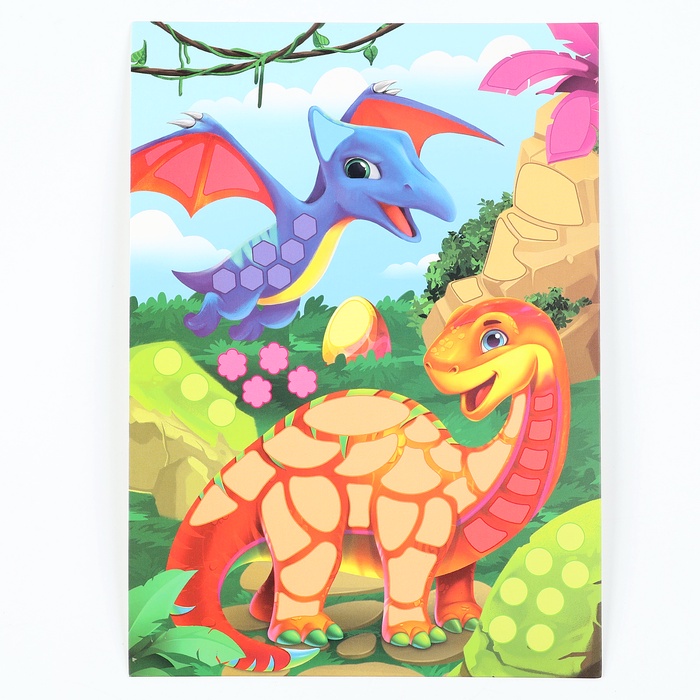 Аппликация форменными стикерами «Страна Дино», набор для творчества, стикерная мозаика — это простая и эффектная аппликация!