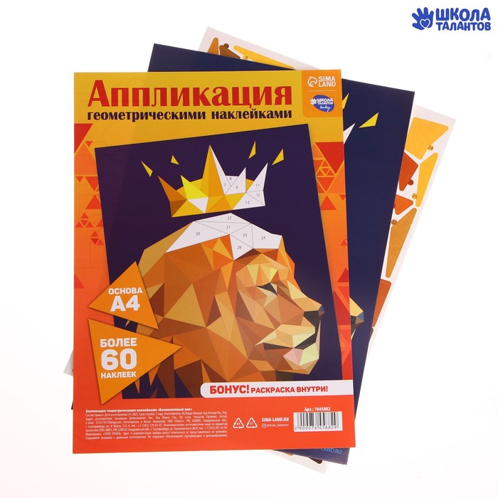 Аппликация геометрическими наклейками для детей «Великолепный лев», набор для творчества — Характеристики