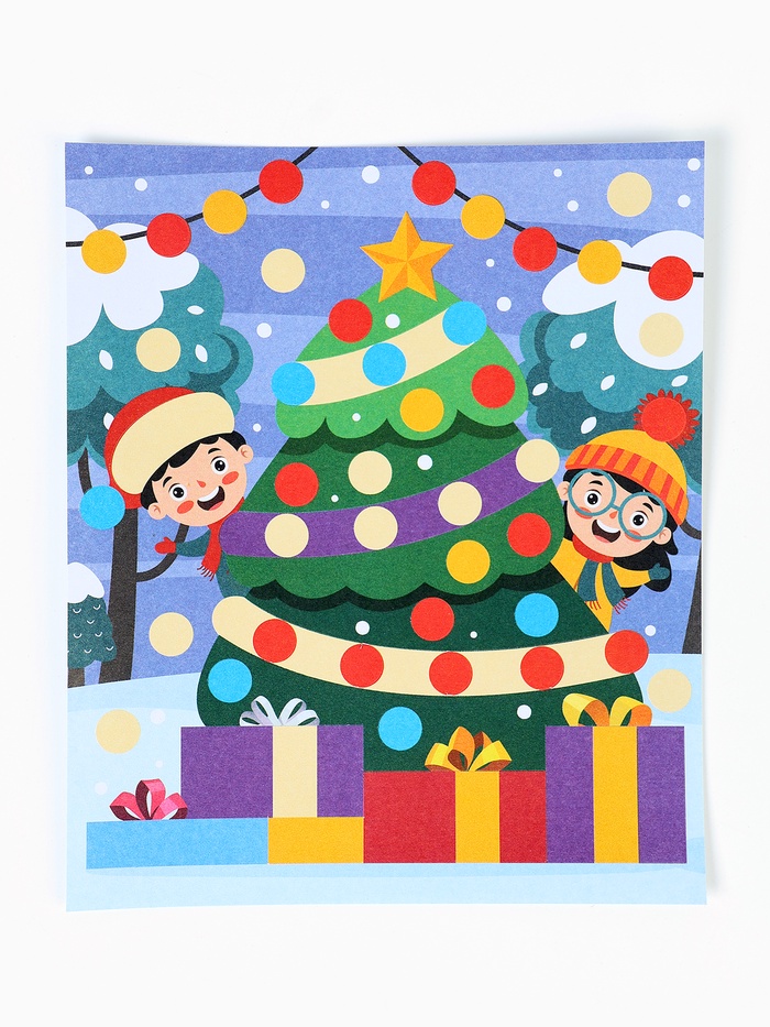 Аппликация из тишью — это увлекательный набор для творчества, предназначенный для детей от 3 лет. Он включает в себя цветные бумажные кружки, которые необходимо смять и приклеить на картонную основу с изображением новогодней ёлки. Результатом станет яркая и объёмная картинка, которая станет отличным украшением интерьера в преддверии праздников.