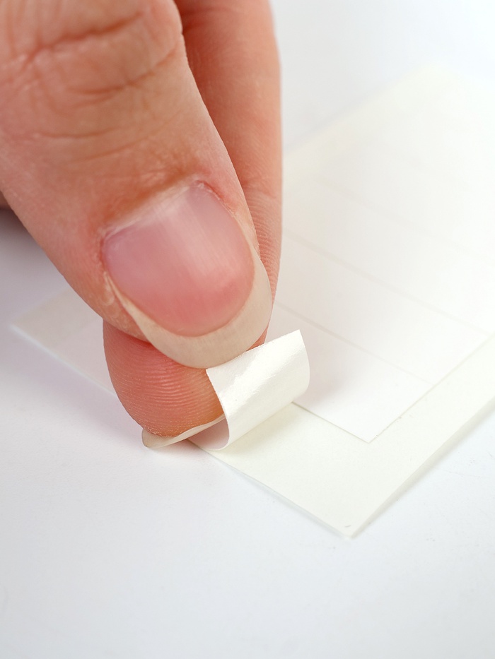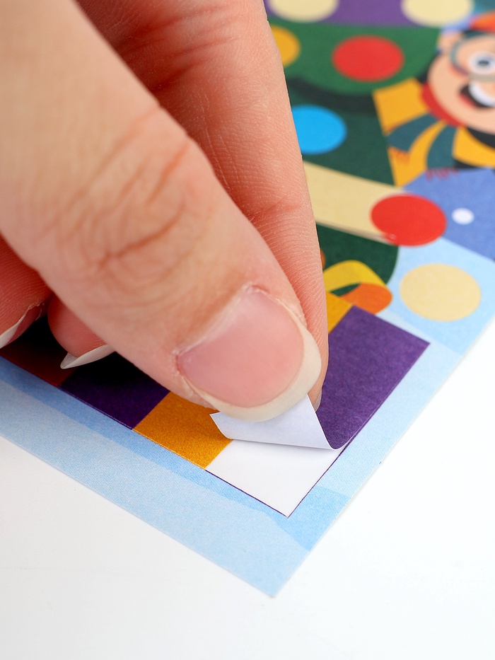 - Снимите верхний цветной слой бумаги с участков, которые вы обклеите бумагой тишью одного цвета. Открытая поверхность будет липкой. Можно помогать себе зубочисткой или пинцетом.