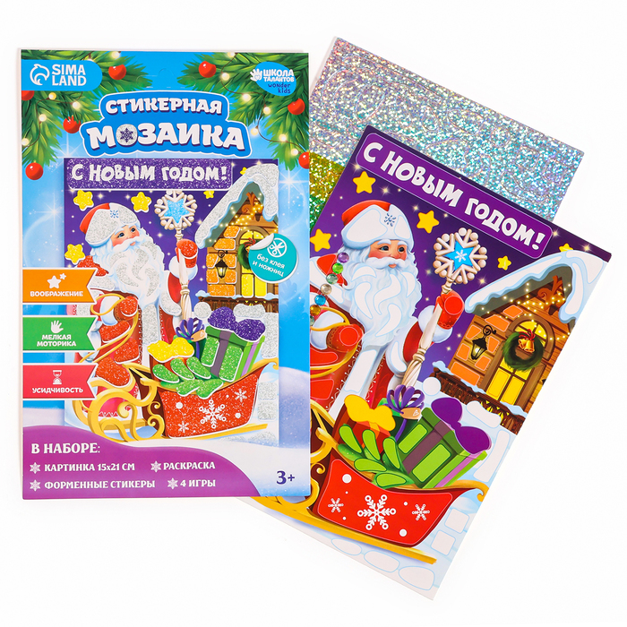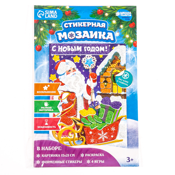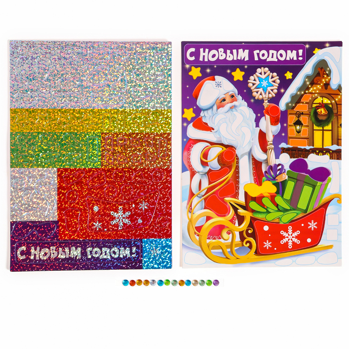 Аппликация - мозаика форменными стикерами «С Новым Годом!», набор для творчества — это простая и эффектная аппликация!