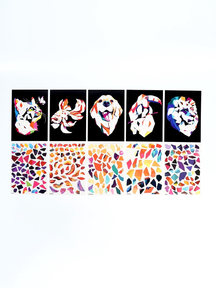 Этот набор позволяет создавать яркие и выразительные изображения животных с помощью наклеек.