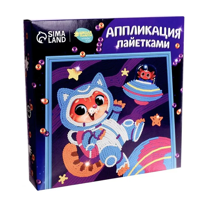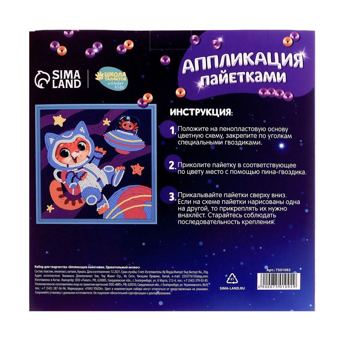 Аппликация пайетками для детей «Удивительный космос», набор для творчества — Характеристики