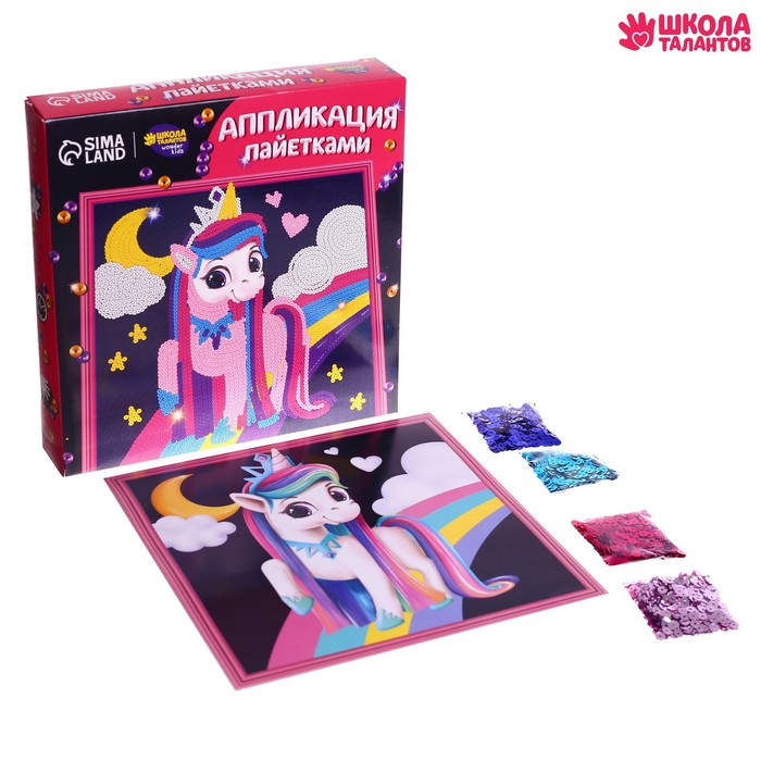 Аппликация пайетками для детей «Весёлый единорог», набор для творчества — Характеристики