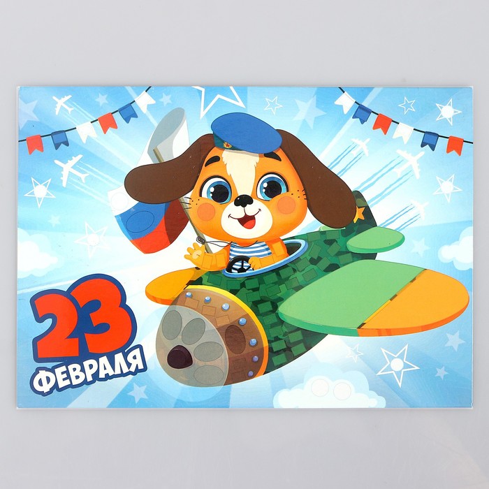 Аппликация стикерами на 23 февраля форменная «Собачка», набор для творчества — Характеристики