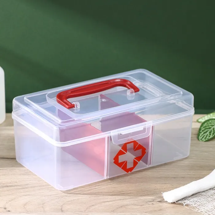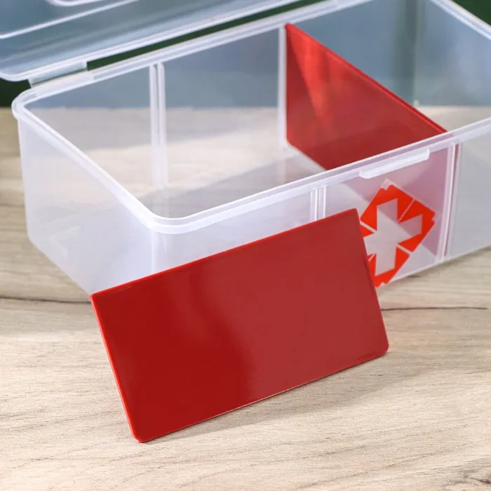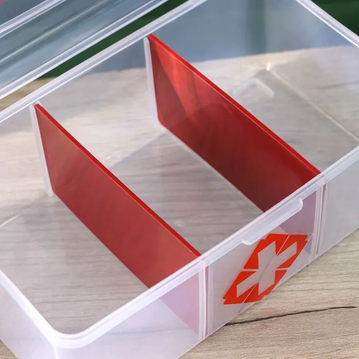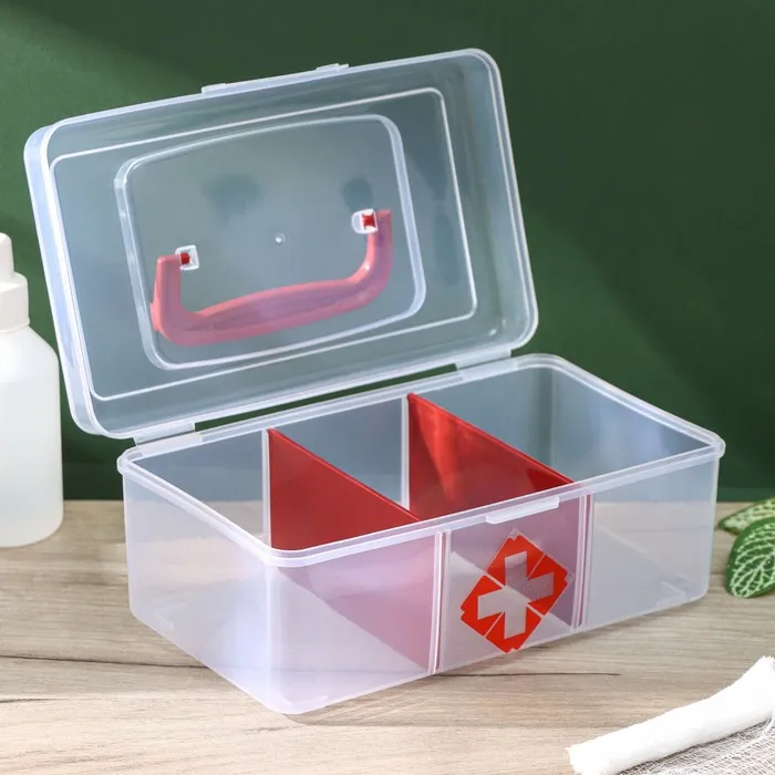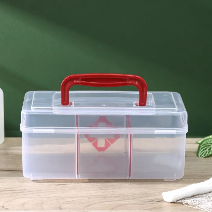 Аптечка, 19.5×12×8.5, пластик, прозрачный корпус, красная ручка — Характеристики