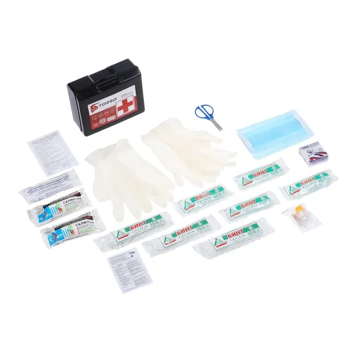 Аптечка автомобильная первой помощи TORSO, состав 2023-2024, ГОСТ 2024 — Характеристики