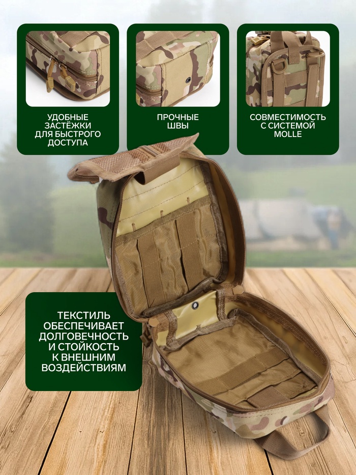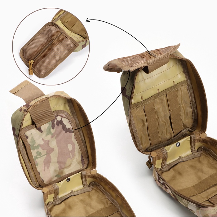 Аптечка тактическая-подсумок, отрывная, камуфляж мультикам, 15×20 см, бежевая — Характеристики