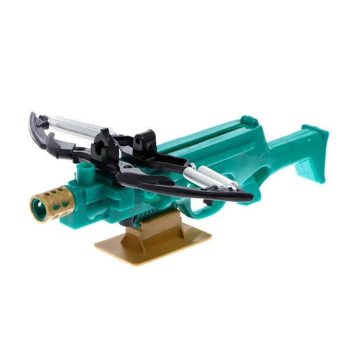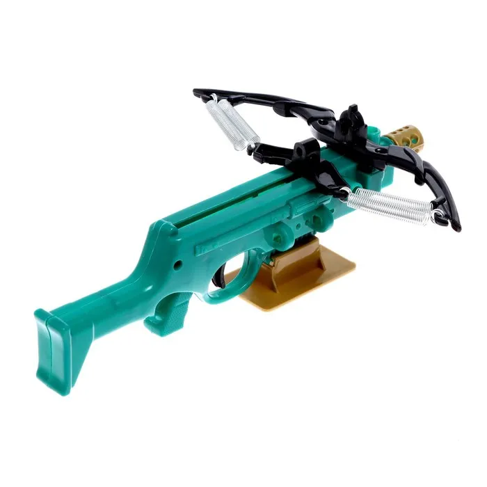 - На пружинках: арбалет оснащён пружинным механизмом, который делает стрельбу динамичной и увлекательной. Просто натяни тетиву, заряди стрелу – и целься в победу!