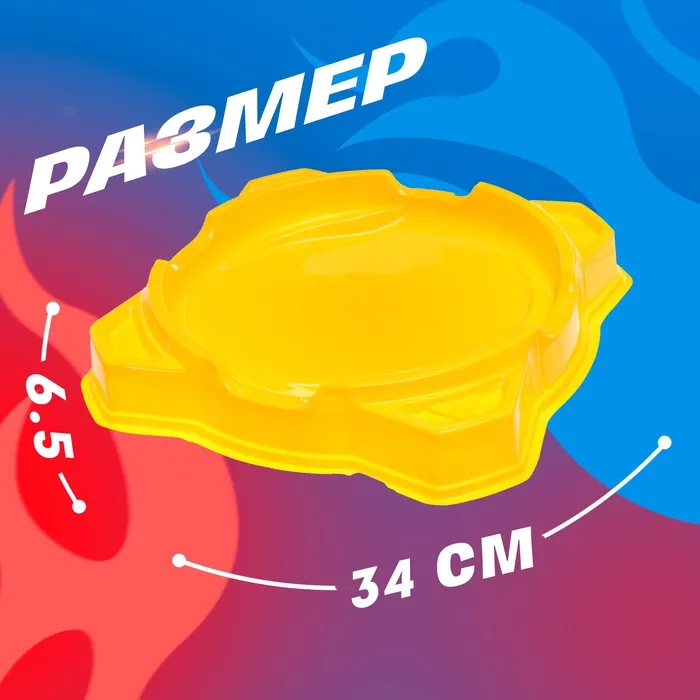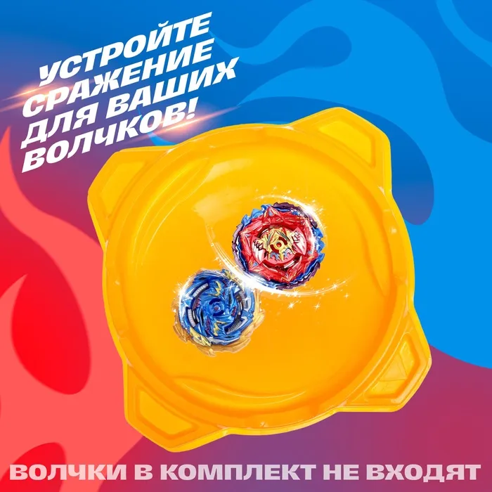 - Яркий дизайн: жёлтый цвет арены добавляет игре динамики и делает её заметной даже в самой яркой игровой комнате. Это не просто поле для битв, а настоящий акцент в мире волчков.